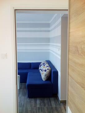 Ferienwohnung bietet Platz für 5 Gäste. Die Betten sind in Schlafzimmern, die es 2 gibt, innerhalb einer Gesamtfläche von 33m2, angeordnet. Die Gäste haben eine eigene Terrasse zur Verfügung, auf der sie in warmen Sommernächten genießen können. Es ist erlaubt, Speisen auf dem Gemeinschafts-Grill vorzubereiten.