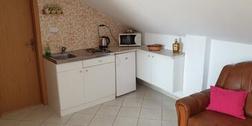 Ferienwohnung bietet Platz für 4 Gäste. Die Betten sind in Schlafzimmern, die es 1 gibt, und in Wohnzimmer, innerhalb einer Gesamtfläche von 43m2, angeordnet. Die Gäste haben eine eigene Terrasse zur Verfügung, auf der sie in warmen Sommernächten genießen können.