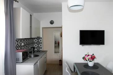 Ferienwohnung bietet Platz für 4 Gäste. Die Betten sind in Schlafzimmern, die es 1 gibt, und in Wohnzimmer, innerhalb einer Gesamtfläche von 33m2, angeordnet. Die Gäste haben eine eigene Terrasse zur Verfügung, auf der sie in warmen Sommernächten genießen können. Es ist erlaubt, Speisen auf dem Gemeinschafts-Grill vorzubereiten.