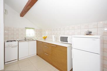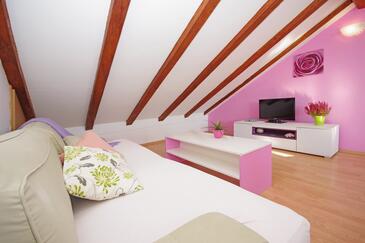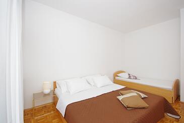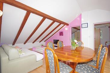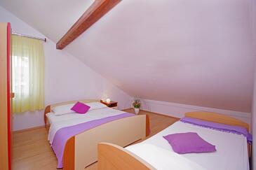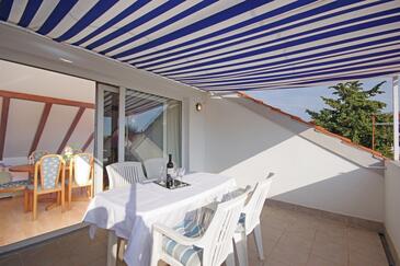 Ferienwohnung bietet Platz für 7 Gäste. Die Betten sind in Schlafzimmern, die es 3 gibt, innerhalb einer Gesamtfläche von 99m2, angeordnet. Die Gäste haben eine eigene Terrasse zur Verfügung, auf der sie in warmen Sommernächten genießen können. Es ist erlaubt, Speisen auf dem Gemeinschafts-Grill vorzubereiten.