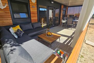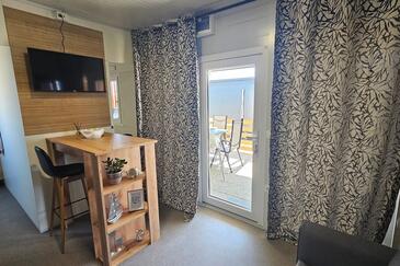 Ferienwohnung bietet Platz für 6 Gäste. Die Betten sind in Schlafzimmern, die es 2 gibt, und in Wohnzimmer, innerhalb einer Gesamtfläche von 24m2, angeordnet. Die Gäste haben eine eigene Terrasse zur Verfügung, auf der sie in warmen Sommernächten genießen können. Es ist erlaubt, Speisen auf dem Gemeinschafts-Grill vorzubereiten. Während ihres Aufenthalts können Gäste das gemeinsam zur Nutzung stehende Schwimmbad benutzen. In der Unterkunftseinheit besteht die Möglichkeit des Mitbringens von Haustieren gegen Aufpreis.