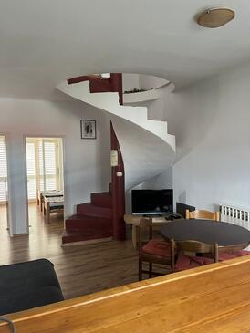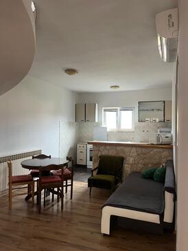 Ferienwohnung bietet Platz für 5 Gäste. Die Betten sind in Schlafzimmern, die es 2 gibt, und in Wohnzimmer, innerhalb einer Gesamtfläche von 66m2, angeordnet. Die Gäste haben eine eigene Terrasse zur Verfügung, auf der sie in warmen Sommernächten genießen können. Es ist erlaubt, Speisen auf dem Gemeinschafts-Grill vorzubereiten. In der Unterkunftseinheit besteht die Möglichkeit des Mitbringens von Haustieren, und die Dienstleistung ist im Preis der Unterkunft enthalten.