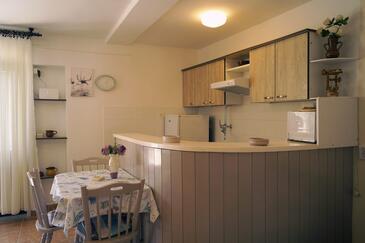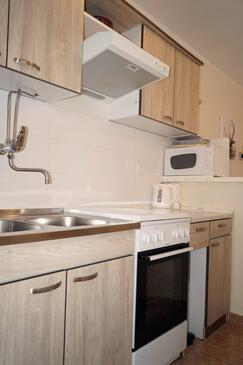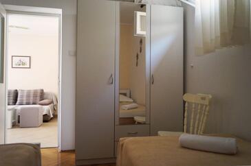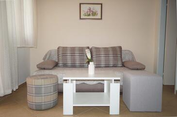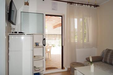 Ferienwohnung bietet Platz für 4 Gäste. Die Betten sind in Schlafzimmern, die es 2 gibt, innerhalb einer Gesamtfläche von 35m2, angeordnet. Die Gäste haben eine eigene Terrasse zur Verfügung, auf der sie in warmen Sommernächten genießen können. Das Apartment bietet Meerblick. Es ist erlaubt, Speisen auf dem Gemeinschafts-Grill vorzubereiten.