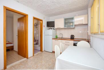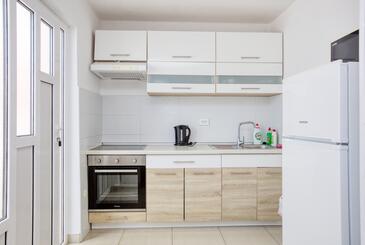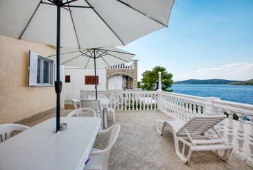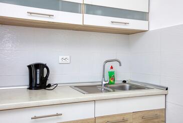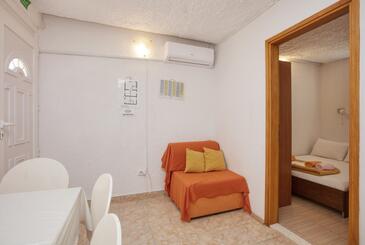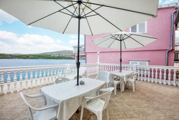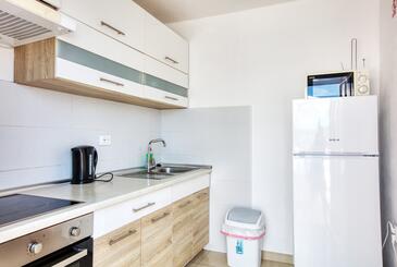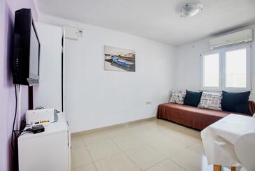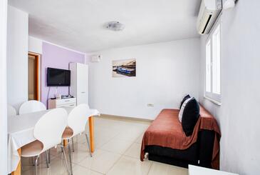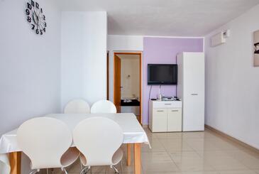 Ferienwohnung bietet Platz für 8 Gäste. Die Betten sind in Schlafzimmern, die es 3 gibt, und in Wohnzimmer, innerhalb einer Gesamtfläche von 76m2, angeordnet. Die Gäste haben eine eigene Terrasse zur Verfügung, auf der sie in warmen Sommernächten genießen können. Das Apartment bietet Meerblick. Es ist erlaubt, Speisen auf dem Gemeinschafts-Grill vorzubereiten.