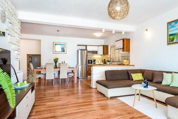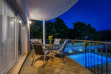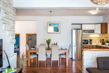Haus bietet Platz für 7 Gäste. Die Betten sind in Schlafzimmern, die es 3 gibt, und in Wohnzimmer, innerhalb einer Gesamtfläche von 86m2, angeordnet. Die Gäste haben eine eigene Terrasse zur Verfügung, auf der sie in warmen Sommernächten genießen können. Für vollen Genuss und Entspannung gibt es einen privaten Grill für Gäste dieser Unterkunft. Während ihres Aufenthalts können Gäste das gemeinsam zur Nutzung stehende Schwimmbad benutzen. In der Unterkunftseinheit besteht die Möglichkeit des Mitbringens von Haustieren gegen Aufpreis. Unterkunftseinheit hat Räume, die von dem Rest der Einheit abgetrennt werden.