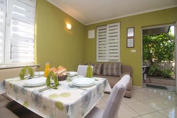Ferienwohnung bietet Platz für 4 Gäste. Die Betten sind in Schlafzimmern, die es 1 gibt, und in Wohnzimmer, innerhalb einer Gesamtfläche von 48m2, angeordnet. Die Gäste haben eine eigene Terrasse zur Verfügung, auf der sie in warmen Sommernächten genießen können. Es ist erlaubt, Speisen auf dem Gemeinschafts-Grill vorzubereiten.