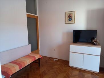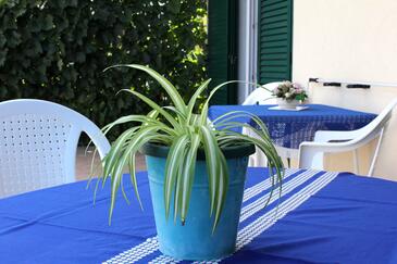 Ferienwohnung bietet Platz für 6 Gäste. Die Betten sind in Schlafzimmern, die es 3 gibt, innerhalb einer Gesamtfläche von 55m2, angeordnet. Die Gäste haben eine eigene Terrasse zur Verfügung, auf der sie in warmen Sommernächten genießen können. Das Apartment bietet Meerblick. Es ist erlaubt, Speisen auf dem Gemeinschafts-Grill vorzubereiten.