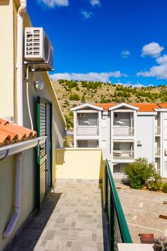 Ferienwohnung bietet Platz für 3 Gäste. Die Betten sind in Schlafzimmern, die es 1 gibt, innerhalb einer Gesamtfläche von 34m2, angeordnet. Die Gäste haben eine eigene Terrasse zur Verfügung, auf der sie in warmen Sommernächten genießen können. Das Apartment bietet Meerblick. Es ist erlaubt, Speisen auf dem Gemeinschafts-Grill vorzubereiten.