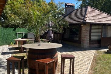 Haus bietet Platz für 8 Gäste. Die Betten sind in Schlafzimmern, die es 2 gibt, und in Wohnzimmer, innerhalb einer Gesamtfläche von 202m2, angeordnet. Die Gäste haben eine eigene Terrasse zur Verfügung, auf der sie in warmen Sommernächten genießen können. Für vollen Genuss und Entspannung gibt es einen privaten Grill für Gäste dieser Unterkunft. In der Unterkunftseinheit besteht die Möglichkeit des Mitbringens von Haustieren, und die Dienstleistung ist im Preis der Unterkunft enthalten. Räume der gebuchten Unterkunftseinheit werden nicht in eine Ganze verbunden.