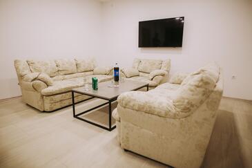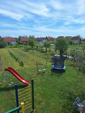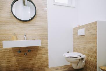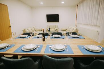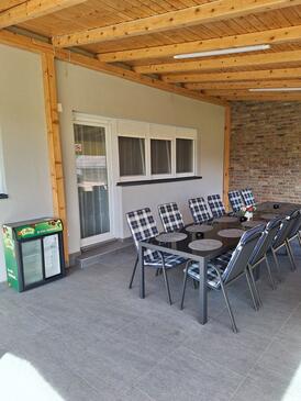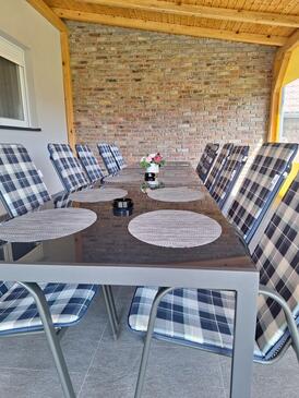 Haus bietet Platz für 12 Gäste. Die Betten sind in Schlafzimmern, die es 4 gibt, innerhalb einer Gesamtfläche von 154m2, angeordnet. Die Gäste haben eine eigene Terrasse zur Verfügung, auf der sie in warmen Sommernächten genießen können. Für vollen Genuss und Entspannung gibt es einen privaten Grill für Gäste dieser Unterkunft.