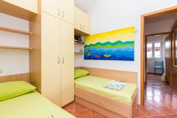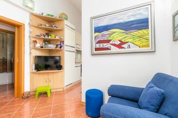 Ferienwohnung bietet Platz für 4 Gäste. Die Betten sind in Schlafzimmern, die es 2 gibt, innerhalb einer Gesamtfläche von 43m2, angeordnet. Die Gäste haben eine eigene Terrasse zur Verfügung, auf der sie in warmen Sommernächten genießen können. Das Apartment bietet Meerblick. Es ist erlaubt, Speisen auf dem Gemeinschafts-Grill vorzubereiten. In der gebuchten Unterkunftseinheit zahlt man am Ort ein Depositum ( der Preis ist an der Internetseite angeführt ).