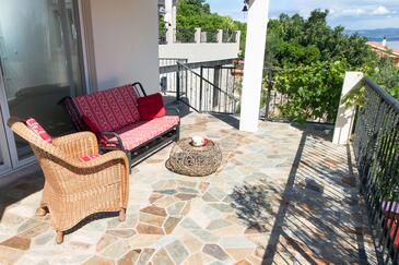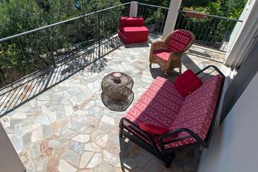 Ferienwohnung bietet Platz für 4 Gäste. Die Betten sind in Schlafzimmern, die es 2 gibt, innerhalb einer Gesamtfläche von 56m2, angeordnet. Die Gäste haben eine eigene Terrasse zur Verfügung, auf der sie in warmen Sommernächten genießen können. Das Apartment bietet Meerblick. Für vollen Genuss und Entspannung gibt es einen privaten Grill für Gäste dieser Unterkunft.