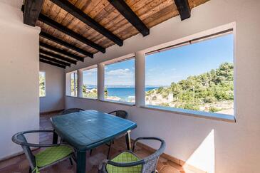 Ferienwohnung bietet Platz für 5 Gäste. Die Betten sind in Schlafzimmern, die es 2 gibt, und in Wohnzimmer, innerhalb einer Gesamtfläche von 57m2, angeordnet. Die Gäste haben eine eigene Terrasse zur Verfügung, auf der sie in warmen Sommernächten genießen können. Das Apartment bietet Meerblick. Es ist erlaubt, Speisen auf dem Gemeinschafts-Grill vorzubereiten. In der Unterkunftseinheit besteht die Möglichkeit des Mitbringens von Haustieren, und die Dienstleistung ist im Preis der Unterkunft enthalten.