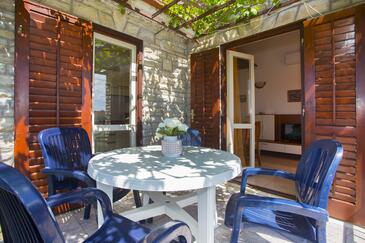 Ferienwohnung bietet Platz für 5 Gäste. Die Betten sind in Schlafzimmern, die es 2 gibt, und in Wohnzimmer, innerhalb einer Gesamtfläche von 47m2, angeordnet. Die Gäste haben eine eigene Terrasse zur Verfügung, auf der sie in warmen Sommernächten genießen können. Das Apartment bietet Meerblick. Es ist erlaubt, Speisen auf dem Gemeinschafts-Grill vorzubereiten.