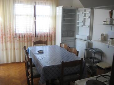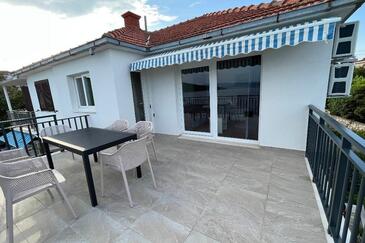Ferienwohnung bietet Platz für 6 Gäste. Die Betten sind in Schlafzimmern, die es 2 gibt, und in Wohnzimmer, innerhalb einer Gesamtfläche von 57m2, angeordnet. Die Gäste haben eine eigene Terrasse zur Verfügung, auf der sie in warmen Sommernächten genießen können. Das Apartment bietet Meerblick. Es ist erlaubt, Speisen auf dem Gemeinschafts-Grill vorzubereiten. In der Unterkunftseinheit besteht die Möglichkeit des Mitbringens von Haustieren gegen Aufpreis.