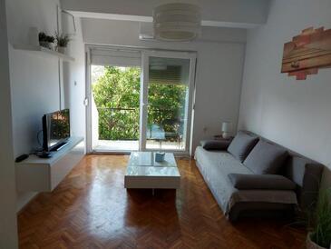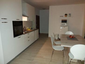 Ferienwohnung bietet Platz für 6 Gäste. Die Betten sind in Schlafzimmern, die es 3 gibt, und in Wohnzimmer, innerhalb einer Gesamtfläche von 56m2, angeordnet. Die Gäste haben eine eigene Terrasse zur Verfügung, auf der sie in warmen Sommernächten genießen können. Das Apartment bietet Meerblick. Es ist erlaubt, Speisen auf dem Gemeinschafts-Grill vorzubereiten. In der Unterkunftseinheit besteht die Möglichkeit des Mitbringens von Haustieren gegen Aufpreis.