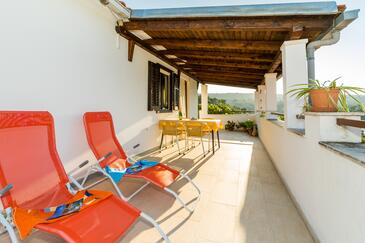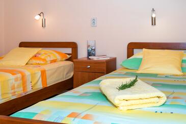 Ferienwohnung bietet Platz für 4 Gäste. Die Betten sind in Schlafzimmern, die es 2 gibt, innerhalb einer Gesamtfläche von 42m2, angeordnet. Die Gäste haben eine eigene Terrasse zur Verfügung, auf der sie in warmen Sommernächten genießen können. Das Apartment bietet Meerblick. Es ist erlaubt, Speisen auf dem Gemeinschafts-Grill vorzubereiten.