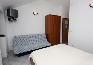 Studio bietet Platz für 2 Gäste. Die Betten sind in Schlafzimmern, die es 1 gibt, innerhalb einer Gesamtfläche von 22m2, angeordnet. Die Gäste haben eine eigene Terrasse zur Verfügung, auf der sie in warmen Sommernächten genießen können. Das Studio-Apartment bietet Meerblick. Es ist erlaubt, Speisen auf dem Gemeinschafts-Grill vorzubereiten.