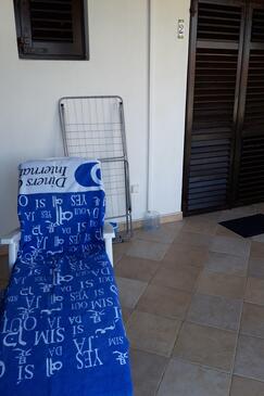 Ferienwohnung bietet Platz für 4 Gäste. Die Betten sind in Schlafzimmern, die es 2 gibt, innerhalb einer Gesamtfläche von 45m2, angeordnet. Die Gäste haben eine eigene Terrasse zur Verfügung, auf der sie in warmen Sommernächten genießen können. Das Apartment bietet Meerblick. Es ist erlaubt, Speisen auf dem Gemeinschafts-Grill vorzubereiten.