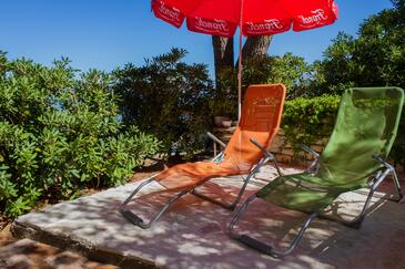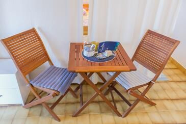 Studio bietet Platz für 3 Gäste. Die Betten sind in Schlafzimmern, die es 1 gibt, innerhalb einer Gesamtfläche von 20m2, angeordnet. Die Gäste haben eine eigene Terrasse zur Verfügung, auf der sie in warmen Sommernächten genießen können. Das Studio-Apartment bietet Meerblick. Es ist erlaubt, Speisen auf dem Gemeinschafts-Grill vorzubereiten.