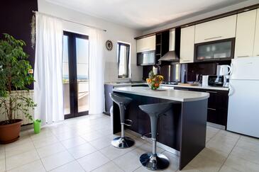 Ferienwohnung bietet Platz für 5 Gäste. Die Betten sind in Schlafzimmern, die es 3 gibt, innerhalb einer Gesamtfläche von 95m2, angeordnet. Die Gäste haben eine eigene Terrasse zur Verfügung, auf der sie in warmen Sommernächten genießen können. Das Apartment bietet Meerblick. Für vollen Genuss und Entspannung gibt es einen privaten Grill für Gäste dieser Unterkunft.