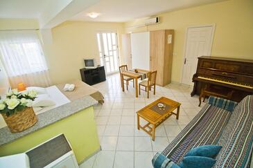 Ferienwohnung bietet Platz für 3 Gäste. Die Betten sind in Schlafzimmern, die es 2 gibt, innerhalb einer Gesamtfläche von 64m2, angeordnet. Die Gäste haben einen eigenen Balkon zur Verfügung, auf der sie in warmen Sommernächten genießen können. Das Apartment bietet Meerblick.