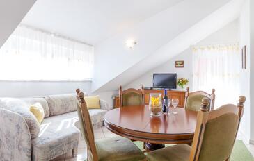 Ferienwohnung bietet Platz für 6 Gäste. Die Betten sind in Schlafzimmern, die es 2 gibt, und in Wohnzimmer, innerhalb einer Gesamtfläche von 64m2, angeordnet. Die Gäste haben eine eigene Terrasse zur Verfügung, auf der sie in warmen Sommernächten genießen können. Das Apartment bietet Meerblick. Es ist erlaubt, Speisen auf dem Gemeinschafts-Grill vorzubereiten.