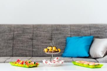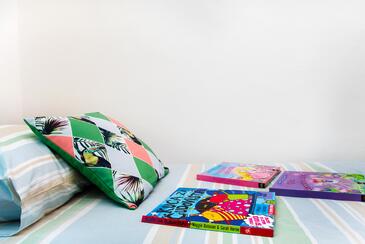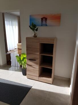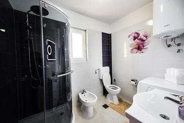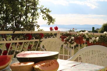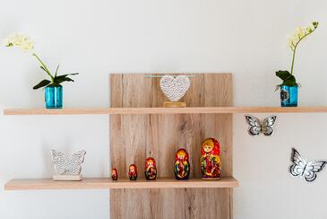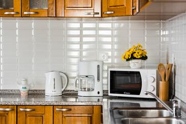 Ferienwohnung bietet Platz für 8 Gäste. Die Betten sind in Schlafzimmern, die es 3 gibt, und in Wohnzimmer, innerhalb einer Gesamtfläche von 79m2, angeordnet. Die Gäste haben eine eigene Terrasse zur Verfügung, auf der sie in warmen Sommernächten genießen können. Das Apartment bietet Meerblick. Es ist erlaubt, Speisen auf dem Gemeinschafts-Grill vorzubereiten. Während ihres Aufenthalts können Gäste das gemeinsam zur Nutzung stehende Schwimmbad benutzen. In der Unterkunftseinheit besteht die Möglichkeit des Mitbringens von Haustieren, und die Dienstleistung ist im Preis der Unterkunft enthalten.