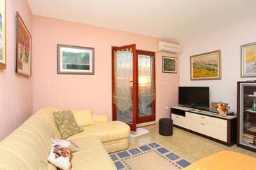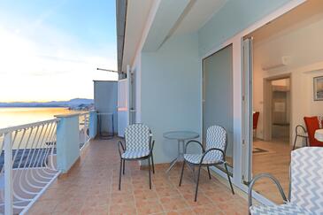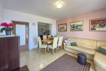 Ferienwohnung bietet Platz für 4 Gäste. Die Betten sind in Schlafzimmern, die es 2 gibt, innerhalb einer Gesamtfläche von 68m2, angeordnet. Die Gäste haben eine eigene Terrasse zur Verfügung, auf der sie in warmen Sommernächten genießen können. Das Apartment bietet Meerblick. Es ist erlaubt, Speisen auf dem Gemeinschafts-Grill vorzubereiten.