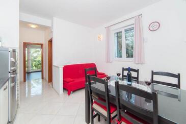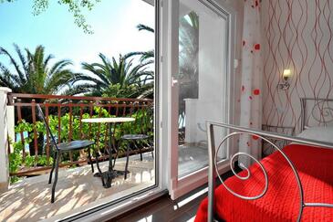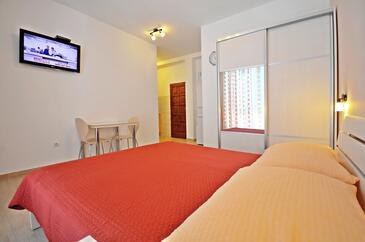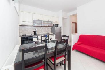 Ferienwohnung bietet Platz für 4 Gäste. Die Betten sind in Schlafzimmern, die es 2 gibt, innerhalb einer Gesamtfläche von 47m2, angeordnet. Die Gäste haben eine eigene Terrasse zur Verfügung, auf der sie in warmen Sommernächten genießen können. Das Apartment bietet Meerblick. Es ist erlaubt, Speisen auf dem Gemeinschafts-Grill vorzubereiten.