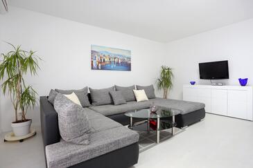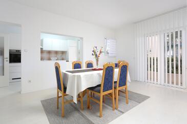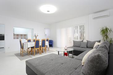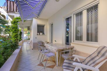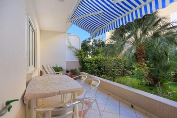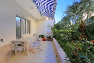 Ferienwohnung bietet Platz für 4 Gäste. Die Betten sind in Schlafzimmern, die es 3 gibt, innerhalb einer Gesamtfläche von 90m2, angeordnet. Die Gäste haben eine eigene Terrasse zur Verfügung, auf der sie in warmen Sommernächten genießen können. Es ist erlaubt, Speisen auf dem Gemeinschafts-Grill vorzubereiten.