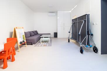Haus bietet Platz für 6 Gäste. Die Betten sind in Schlafzimmern, die es 2 gibt, und in Wohnzimmer, innerhalb einer Gesamtfläche von 121m2, angeordnet. Für vollen Genuss und Entspannung gibt es einen privaten Grill für Gäste dieser Unterkunft. Die reservierte Unterkunftseinheit hat keinen Balkon und keine Terrasse.