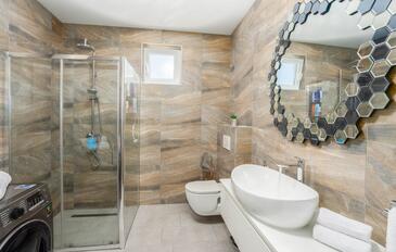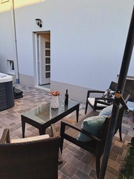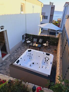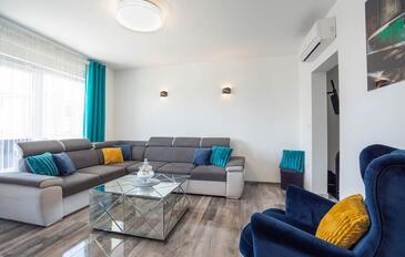 Ferienwohnung bietet Platz für 8 Gäste. Die Betten sind in Schlafzimmern, die es 3 gibt, und in Wohnzimmer, innerhalb einer Gesamtfläche von 114m2, angeordnet. Die Gäste haben eine eigene Terrasse zur Verfügung, auf der sie in warmen Sommernächten genießen können. Das Apartment bietet Meerblick. Es ist erlaubt, Speisen auf dem Gemeinschafts-Grill vorzubereiten.