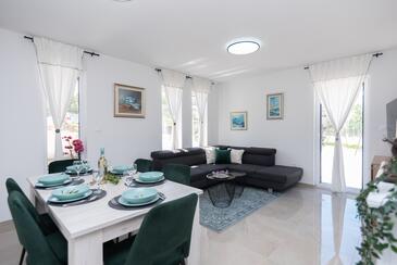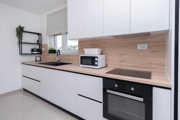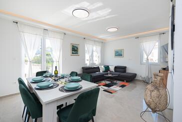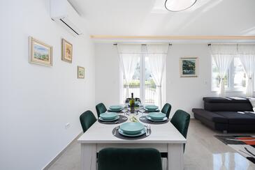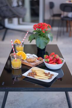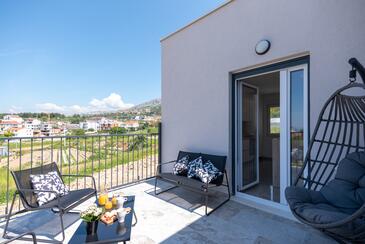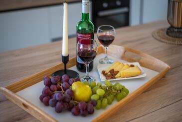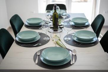 Ferienwohnung bietet Platz für 6 Gäste. Die Betten sind in Schlafzimmern, die es 2 gibt, und in Wohnzimmer, innerhalb einer Gesamtfläche von 83m2, angeordnet. Die Gäste haben eine eigene Terrasse zur Verfügung, auf der sie in warmen Sommernächten genießen können. Es ist erlaubt, Speisen auf dem Gemeinschafts-Grill vorzubereiten.
