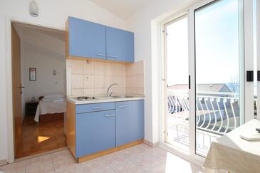 Ferienwohnung bietet Platz für 3 Gäste. Die Betten sind in Schlafzimmern, die es 1 gibt, und in Wohnzimmer, innerhalb einer Gesamtfläche von 22m2, angeordnet. Die Gäste haben einen eigenen Balkon zur Verfügung, auf der sie in warmen Sommernächten genießen können. Das Apartment bietet Meerblick. Es ist erlaubt, Speisen auf dem Gemeinschafts-Grill vorzubereiten.