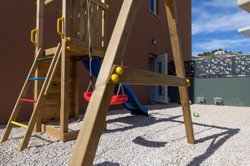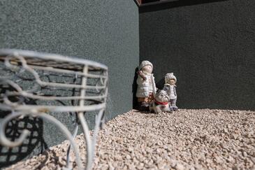 Ferienwohnung bietet Platz für 6 Gäste. Die Betten sind in Schlafzimmern, die es 2 gibt, und in Wohnzimmer, innerhalb einer Gesamtfläche von 77m2, angeordnet. Die Gäste haben eine eigene Terrasse zur Verfügung, auf der sie in warmen Sommernächten genießen können.
