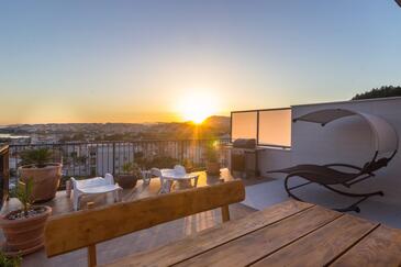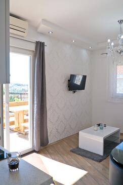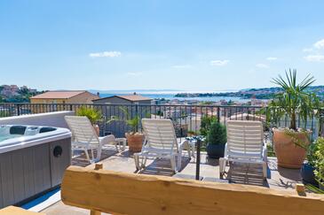Ferienwohnung bietet Platz für 3 Gäste. Die Betten sind in Schlafzimmern, die es 1 gibt, und in Wohnzimmer, innerhalb einer Gesamtfläche von 30m2, angeordnet. Die Gäste haben eine eigene Terrasse zur Verfügung, auf der sie in warmen Sommernächten genießen können. Das Apartment bietet Meerblick. Es ist erlaubt, Speisen auf dem Gemeinschafts-Grill vorzubereiten.