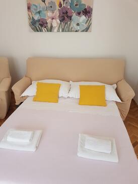 Ferienwohnung bietet Platz für 4 Gäste. Die Betten sind in Schlafzimmern, die es 1 gibt, und in Wohnzimmer, innerhalb einer Gesamtfläche von 59m2, angeordnet. Die Gäste haben eine eigene Terrasse zur Verfügung, auf der sie in warmen Sommernächten genießen können. Es ist erlaubt, Speisen auf dem Gemeinschafts-Grill vorzubereiten.