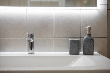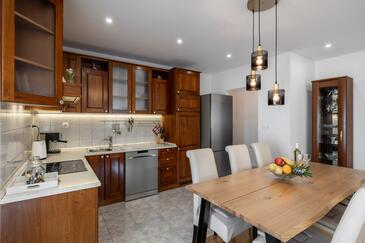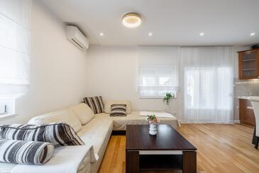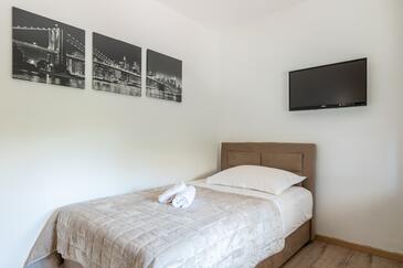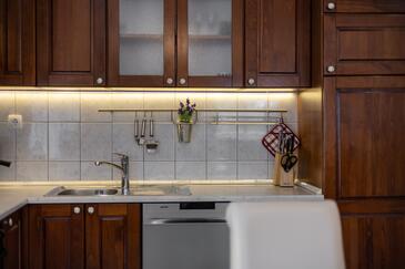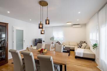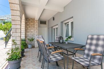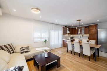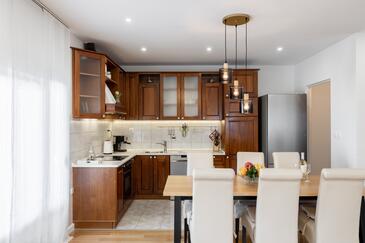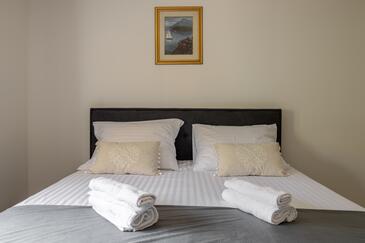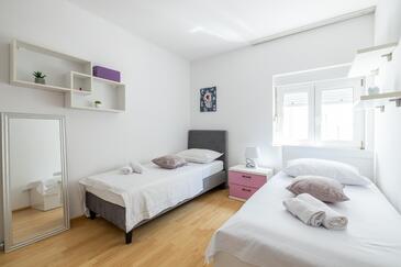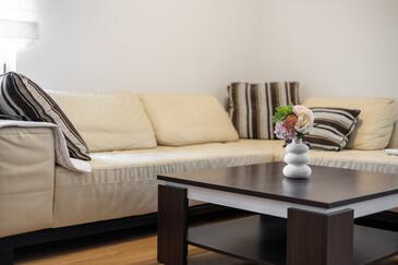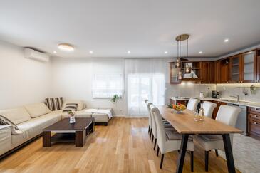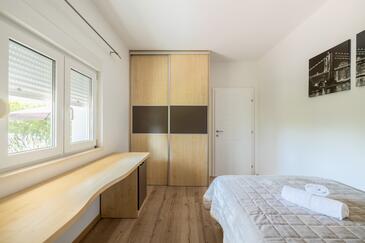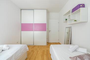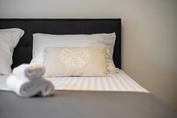 Ferienwohnung bietet Platz für 5 Gäste. Die Betten sind in Schlafzimmern, die es 3 gibt, innerhalb einer Gesamtfläche von 84m2, angeordnet. Die Gäste haben eine eigene Terrasse zur Verfügung, auf der sie in warmen Sommernächten genießen können. Es ist erlaubt, Speisen auf dem Gemeinschafts-Grill vorzubereiten.
