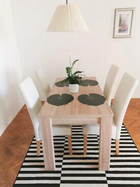 Ferienwohnung bietet Platz für 6 Gäste. Die Betten sind in Schlafzimmern, die es 2 gibt, und in Wohnzimmer, innerhalb einer Gesamtfläche von 78m2, angeordnet. Die Gäste haben einen eigenen Balkon zur Verfügung, auf der sie in warmen Sommernächten genießen können.