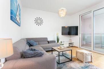Ferienwohnung bietet Platz für 4 Gäste. Die Betten sind in Schlafzimmern, die es 2 gibt, innerhalb einer Gesamtfläche von 68m2, angeordnet. Die Gäste haben eine eigene Terrasse zur Verfügung, auf der sie in warmen Sommernächten genießen können.