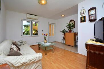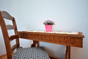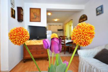 Ferienwohnung bietet Platz für 5 Gäste. Die Betten sind in Schlafzimmern, die es 2 gibt, und in Wohnzimmer, innerhalb einer Gesamtfläche von 57m2, angeordnet. Die Gäste haben einen eigenen Balkon zur Verfügung, auf der sie in warmen Sommernächten genießen können. Das Apartment bietet Meerblick. Es ist erlaubt, Speisen auf dem Gemeinschafts-Grill vorzubereiten. In der Unterkunftseinheit besteht die Möglichkeit des Mitbringens von Haustieren, und die Dienstleistung ist im Preis der Unterkunft enthalten.