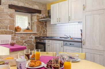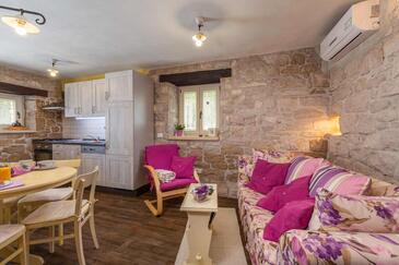 Haus bietet Platz für 4 Gäste. Die Betten sind in Schlafzimmern, die es 2 gibt, innerhalb einer Gesamtfläche von 50m2, angeordnet. Die Gäste haben eine eigene Terrasse zur Verfügung, auf der sie in warmen Sommernächten genießen können. Für vollen Genuss und Entspannung gibt es einen privaten Grill für Gäste dieser Unterkunft.