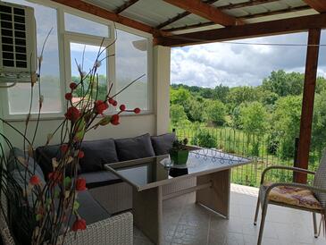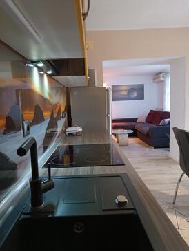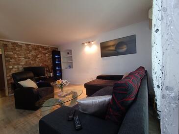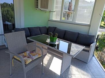 Ferienwohnung bietet Platz für 5 Gäste. Die Betten sind in Schlafzimmern, die es 2 gibt, und in Wohnzimmer, innerhalb einer Gesamtfläche von 74m2, angeordnet. Die Gäste haben eine eigene Terrasse zur Verfügung, auf der sie in warmen Sommernächten genießen können. Es ist erlaubt, Speisen auf dem Gemeinschafts-Grill vorzubereiten.