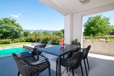 Haus bietet Platz für 8 Gäste. Die Betten sind in Schlafzimmern, die es 4 gibt, innerhalb einer Gesamtfläche von 124m2, angeordnet. Die Gäste haben eine eigene Terrasse zur Verfügung, auf der sie in warmen Sommernächten genießen können. Für vollen Genuss und Entspannung gibt es einen privaten Grill für Gäste dieser Unterkunft. Während ihres Aufenthalts können sich Gäste im privaten Schwimmbad entspannen.