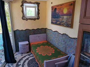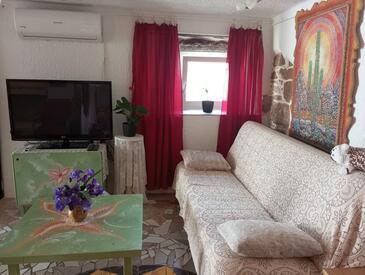 Studio bietet Platz für 4 Gäste. Die Betten sind in Wohnzimmer, innerhalb einer Gesamtfläche von 58m2, angeordnet. Die Gäste haben eine eigene Terrasse zur Verfügung, auf der sie in warmen Sommernächten genießen können. Es ist erlaubt, Speisen auf dem Gemeinschafts-Grill vorzubereiten.