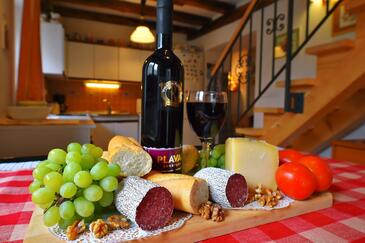 Haus bietet Platz für 6 Gäste. Die Betten sind in Schlafzimmern, die es 3 gibt, innerhalb einer Gesamtfläche von 132m2, angeordnet. Die Gäste haben einen eigenen Balkon zur Verfügung, auf der sie in warmen Sommernächten genießen können. Für vollen Genuss und Entspannung gibt es einen privaten Grill für Gäste dieser Unterkunft.