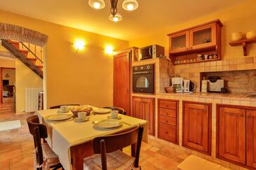Haus bietet Platz für 6 Gäste. Die Betten sind in Schlafzimmern, die es 3 gibt, innerhalb einer Gesamtfläche von 114m2, angeordnet. Die Gäste haben eine eigene Terrasse zur Verfügung, auf der sie in warmen Sommernächten genießen können. Es ist erlaubt, Speisen auf dem Gemeinschafts-Grill vorzubereiten. Während ihres Aufenthalts können sich Gäste im privaten Schwimmbad entspannen. In der Unterkunftseinheit besteht die Möglichkeit des Mitbringens von Haustieren, und die Dienstleistung ist im Preis der Unterkunft enthalten.