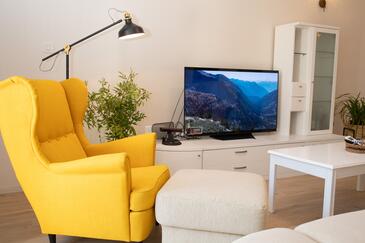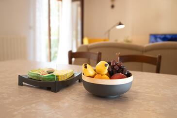 Ferienwohnung bietet Platz für 6 Gäste. Die Betten sind in Schlafzimmern, die es 3 gibt, innerhalb einer Gesamtfläche von 109m2, angeordnet. Die Gäste haben eine eigene Terrasse zur Verfügung, auf der sie in warmen Sommernächten genießen können. Es ist erlaubt, Speisen auf dem Gemeinschafts-Grill vorzubereiten. In der Unterkunftseinheit besteht die Möglichkeit des Mitbringens von Haustieren gegen Aufpreis.