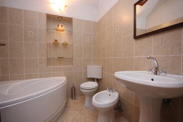 Haus bietet Platz für 8 Gäste. Die Betten sind in Schlafzimmern, die es 3 gibt, innerhalb einer Gesamtfläche von 114m2, angeordnet. Die Gäste haben eine eigene Terrasse zur Verfügung, auf der sie in warmen Sommernächten genießen können. Für vollen Genuss und Entspannung gibt es einen privaten Grill für Gäste dieser Unterkunft. Durch das Schlafzimmer der gebuchten Unterkunftseinheit geht man in die andere Räume der Einheit.